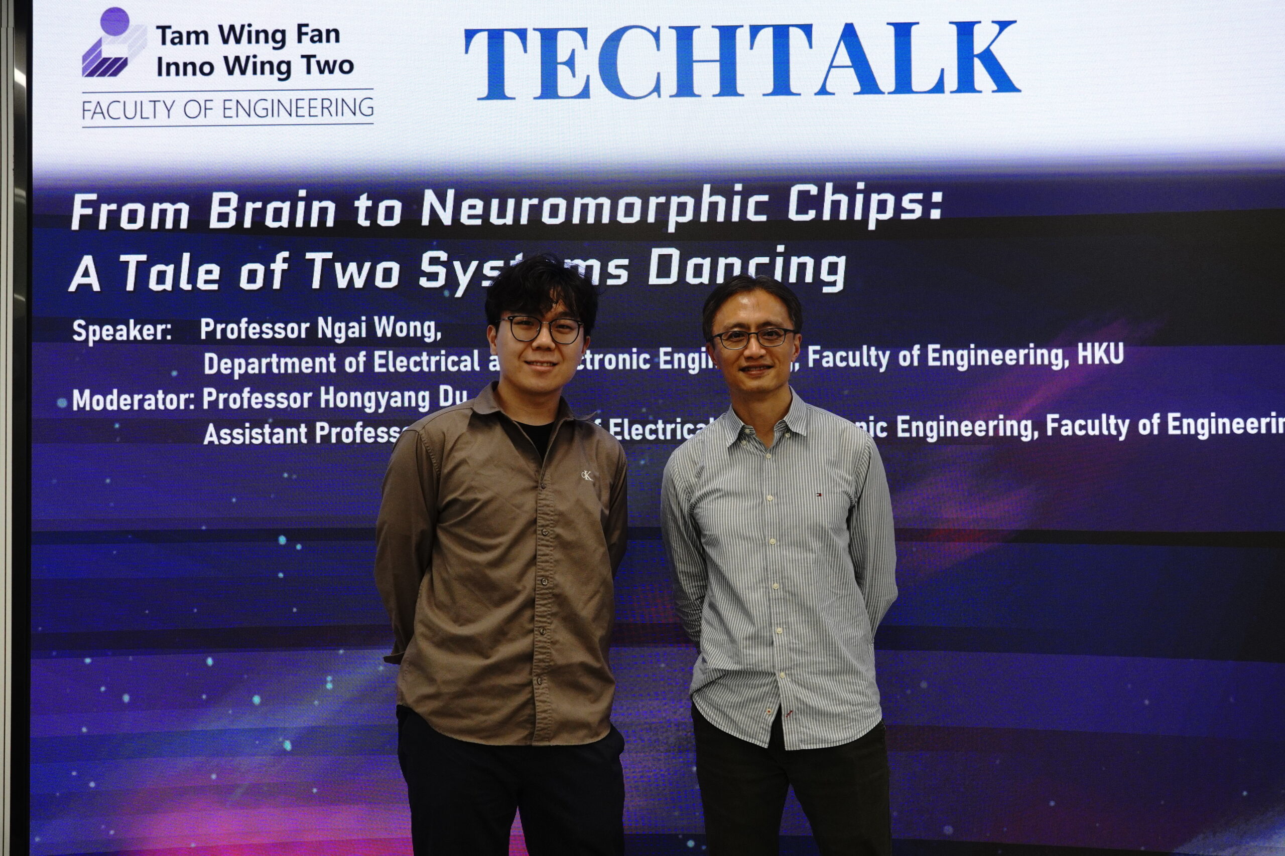 • The tech talk “From Brain to Neuromorphic Chips: A Tale of Two Systems Dancing” will be organized in the Tam Wing Fan Innovation Wing Two (G/F, Run Run Shaw Building, HKU) on 5th March 2026 (Thursday), 4:00pm.